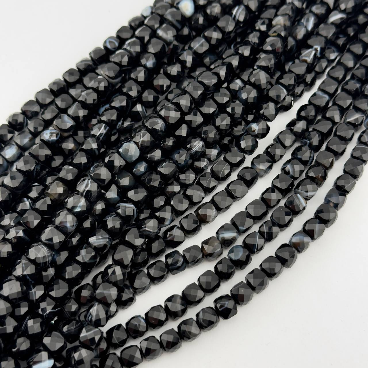 Бусины Агат полосатый черный граненый глянцевый шар 6 8 10мм натуральный камень