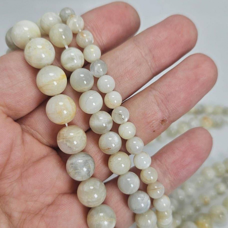 Бусины Олигоклаз (Солнечный камень) белый гладкий глянцевый шар 6 8 10мм натуральный камень