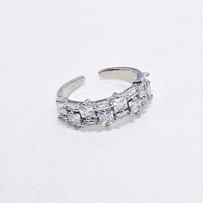 Кольцо безразмерное с фианитами размер 21*6мм цвет серебро в Ростове-на-Дону