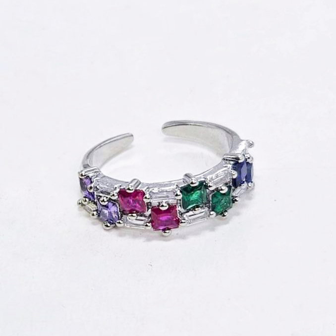 Кольцо безразмерное с цветными фианитами размер 21*6мм цвет серебро в Ростове-на-Дону